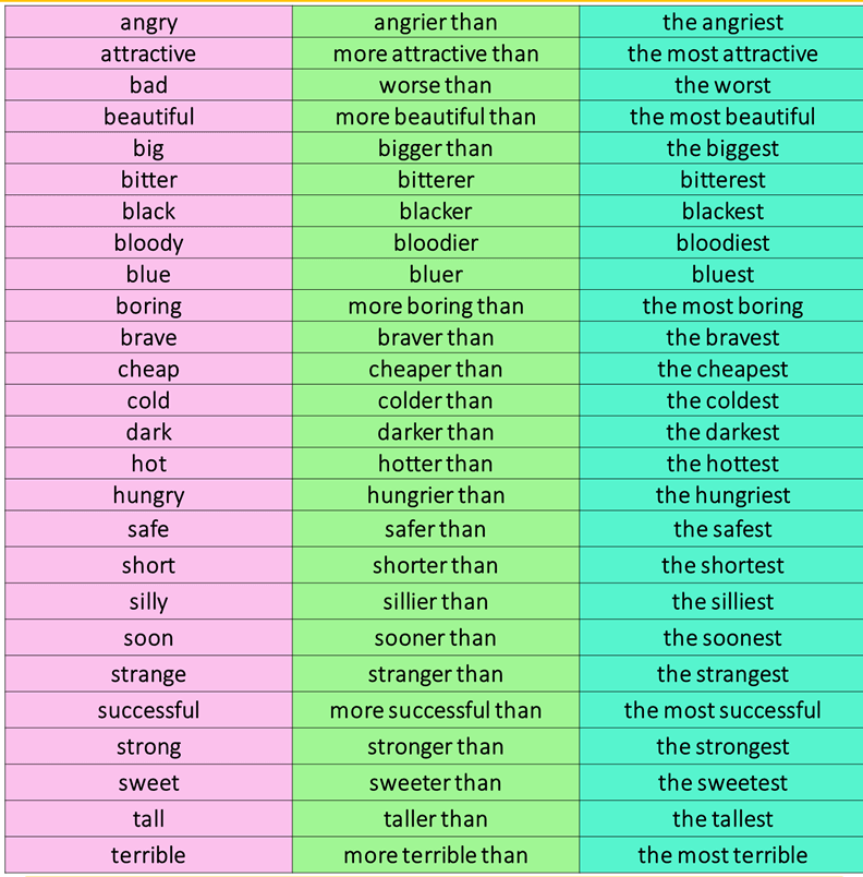 GRAMMAR: COMPARATIVE AND SUPERLATIVE ADJECTIVES